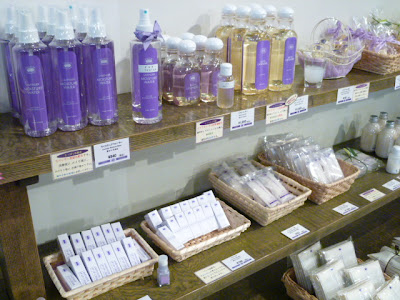 In a lavender season from late June to early August, the cafe is packed with visitors, but today we can relax, drinking lavender soda....In the gift shop,