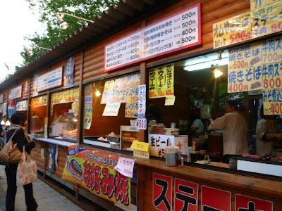 There are some food corners in the park during the festival.