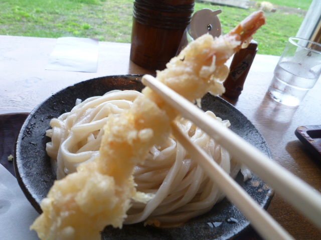 The restaurant has some normal tables but I like to take a seat at this LONG table just behind the BIG windows so that I can enjoy eating udon while looking around the rural beauty!