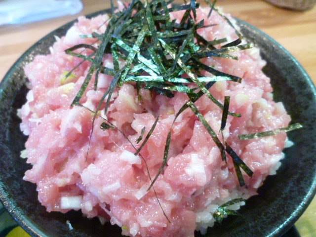 Here comes the negitoro bowl. Negitoro is chopped tuna mixed with naganegi onion.