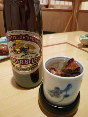 Do you know what kind of sake is in front of the beer bottle? This is hot sake with grilled fins of torahugu. I really recommend hugu sake, which has very distinctive aroma!
