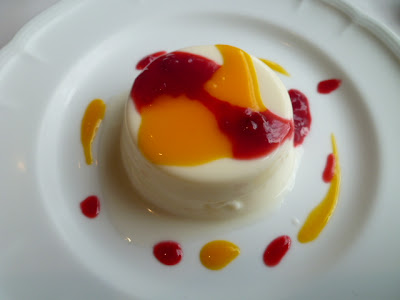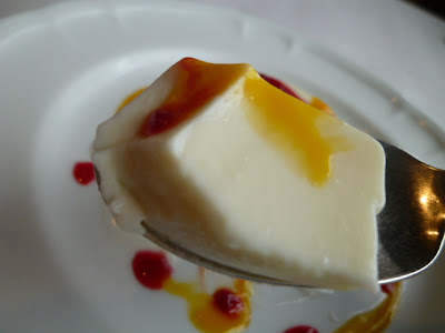 Last but not least, we enjoyed "Blanc Manger". The berry sauce really suits with this white dessert.