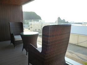 As we've arrived at this floor a little bit earlier, we relaxed at a terrace in front of the dinner venue. How beautiful the ocean is! I really recommend you to see wonderful sunset from the area between Oronkoiwa Rock and Sankakuiiwa Rock↓