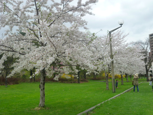 Just for reference, cherry blossoms along a parking lot of Sapporo Park Hotel (札幌パークホテル) next to Nakajima Park are also beautiful!!!